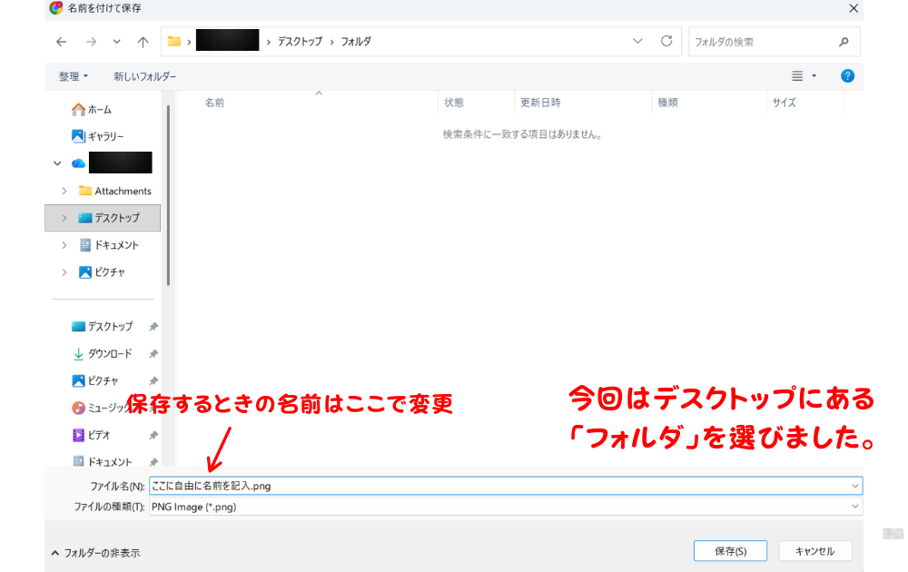 保存先を選ぶ画面が表示されたら、