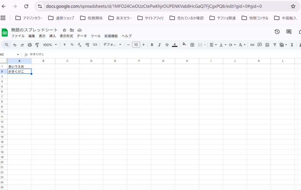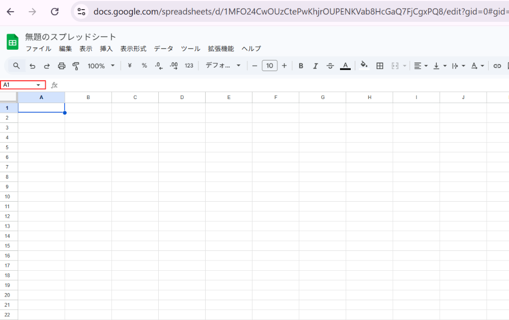 スプレッドシートを開くと、